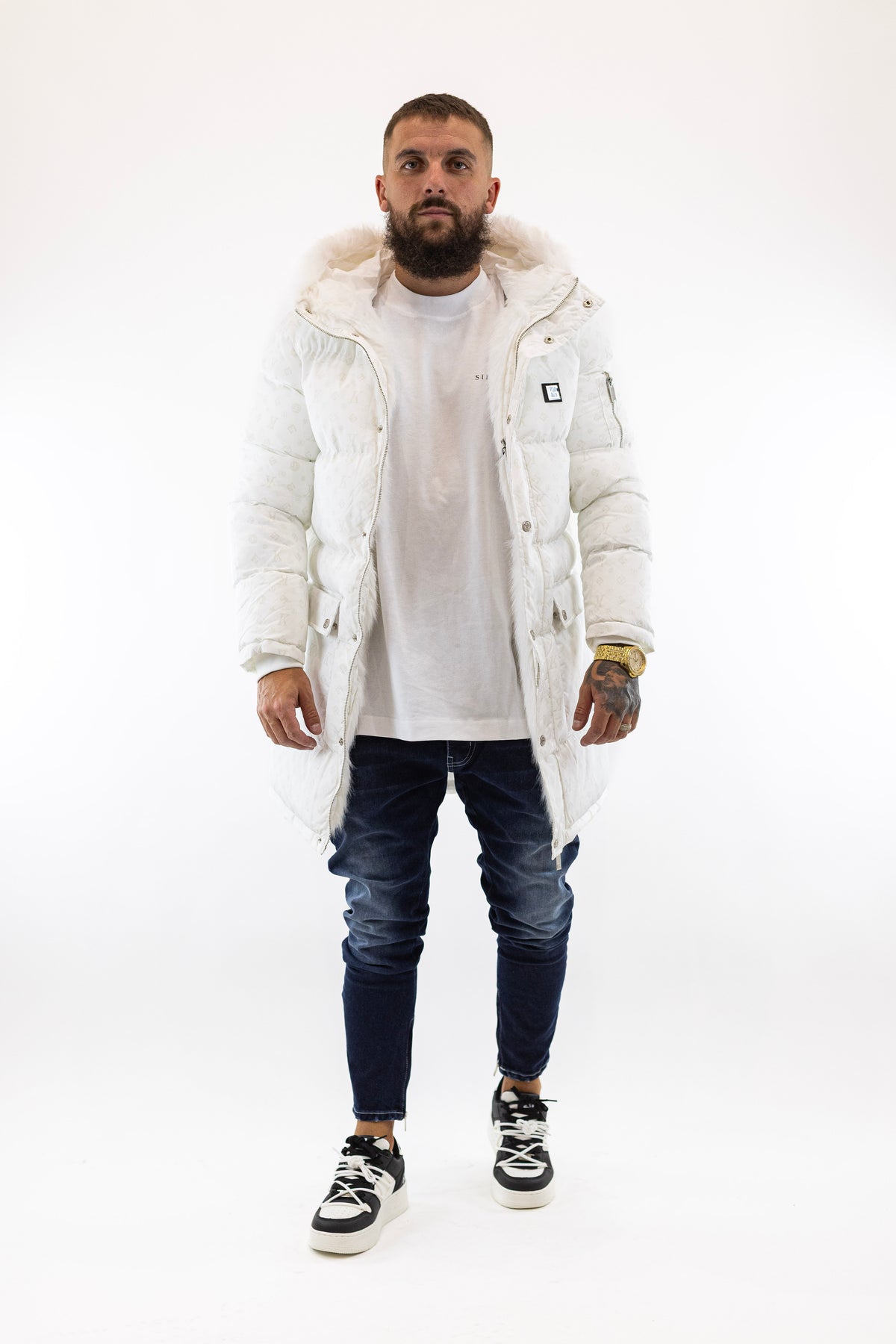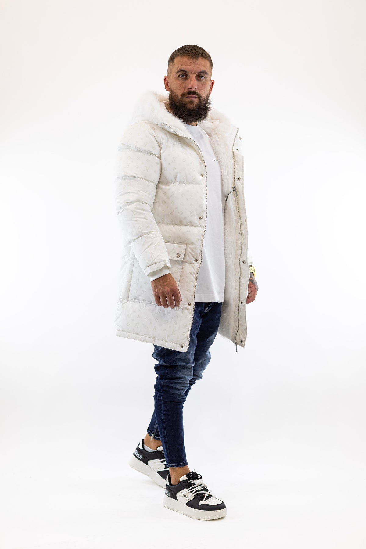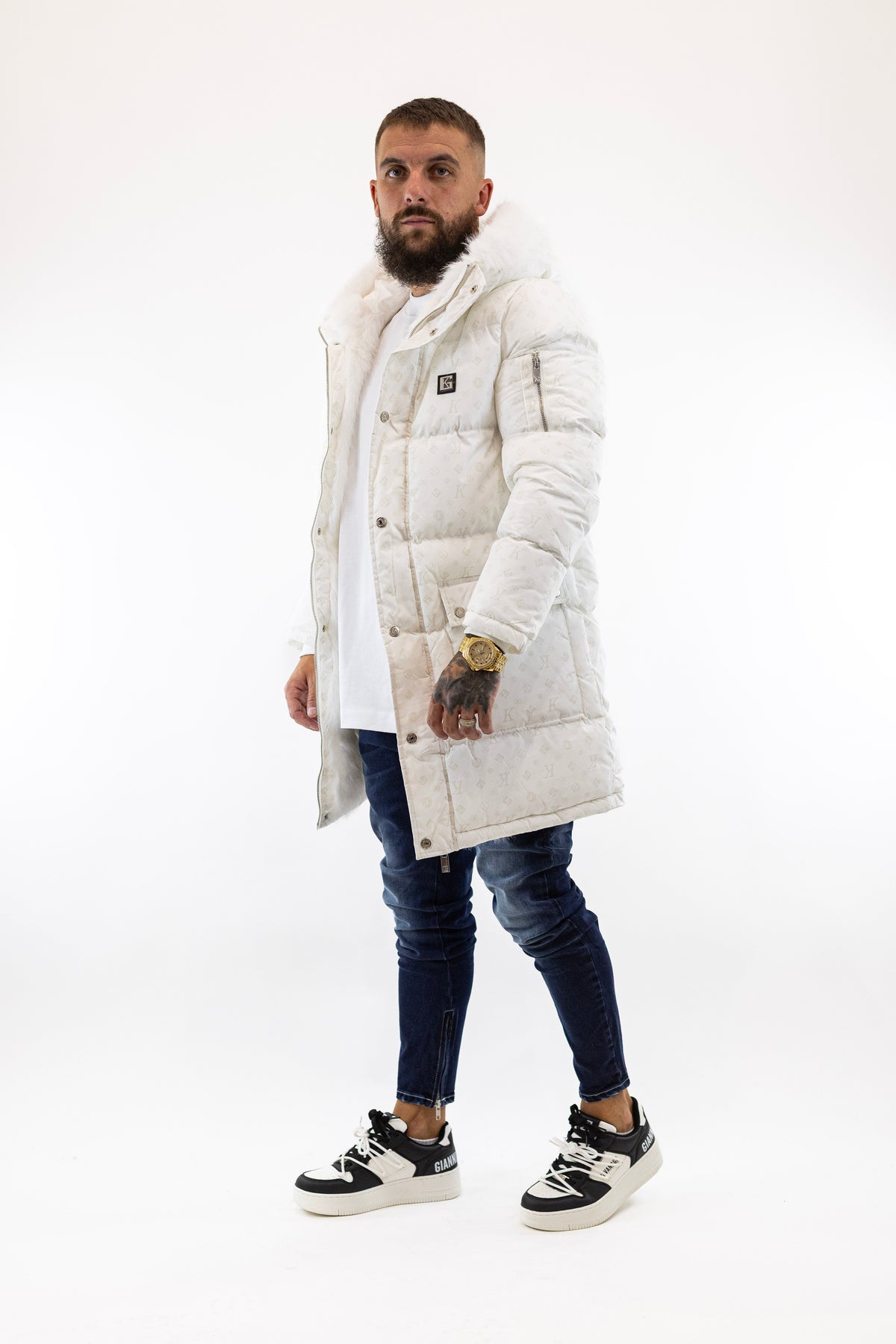 Casaco Comprido Branco Logomania Gianni Kavanagh